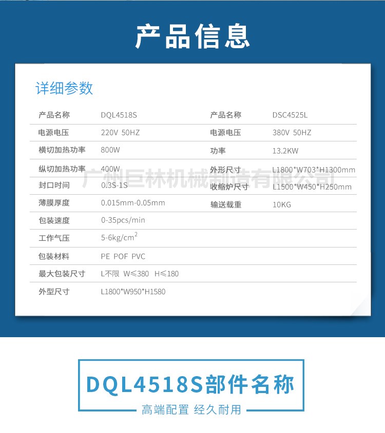 【DQL4518S全自动边封封切机+DSC4525L热收缩包装机 】详细信息